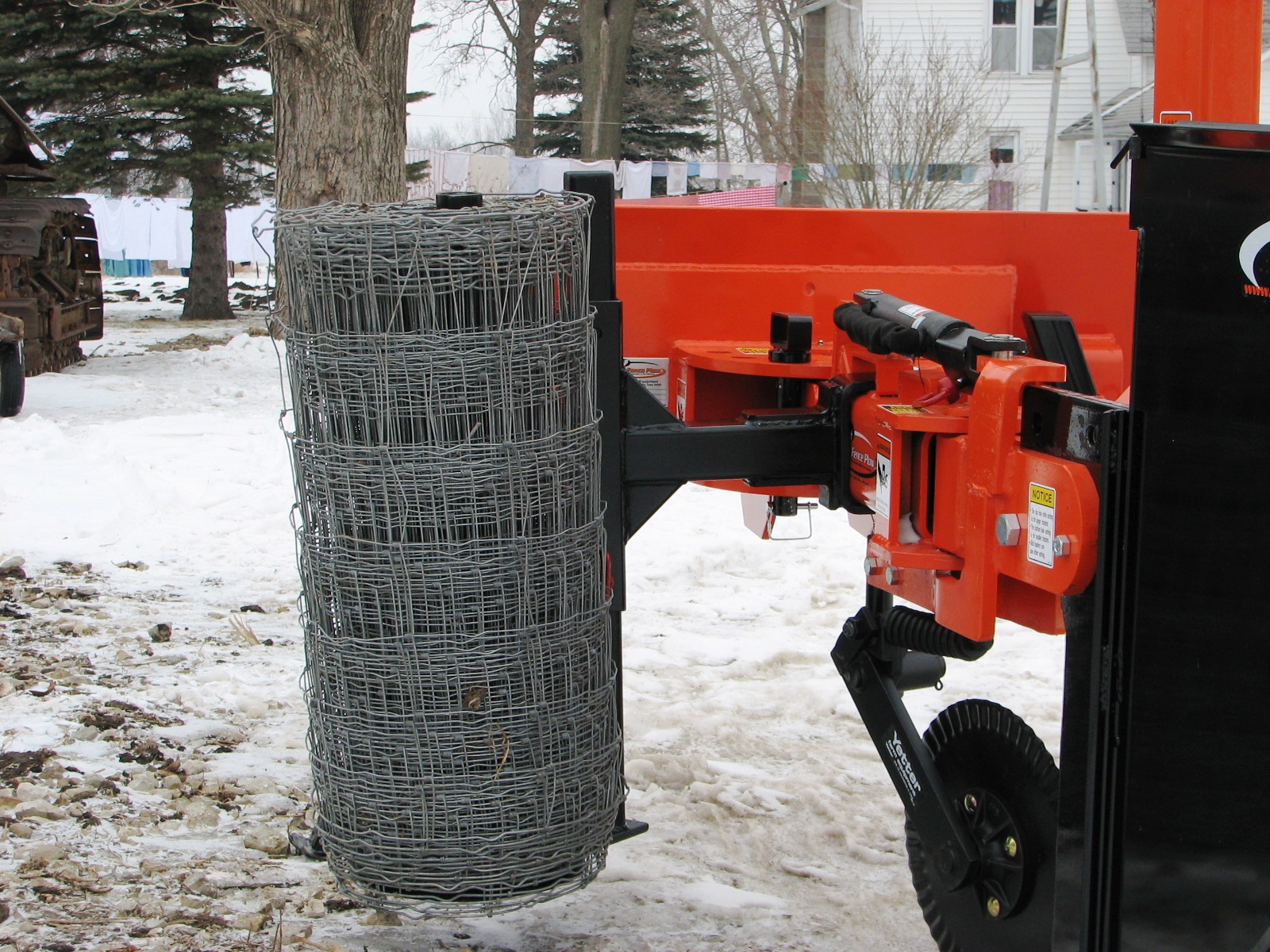 The wire unroller mounts on either side of the machine. It allows a roll of wire to be unrolled as the fabric is being sliced into the ground. It will not install the wire into the ground. If you need to install the wire and the fabric into the ground together look at the Enfencer machine on our website. With the Push Pull model the wire unroller can only be used in the backwards position.