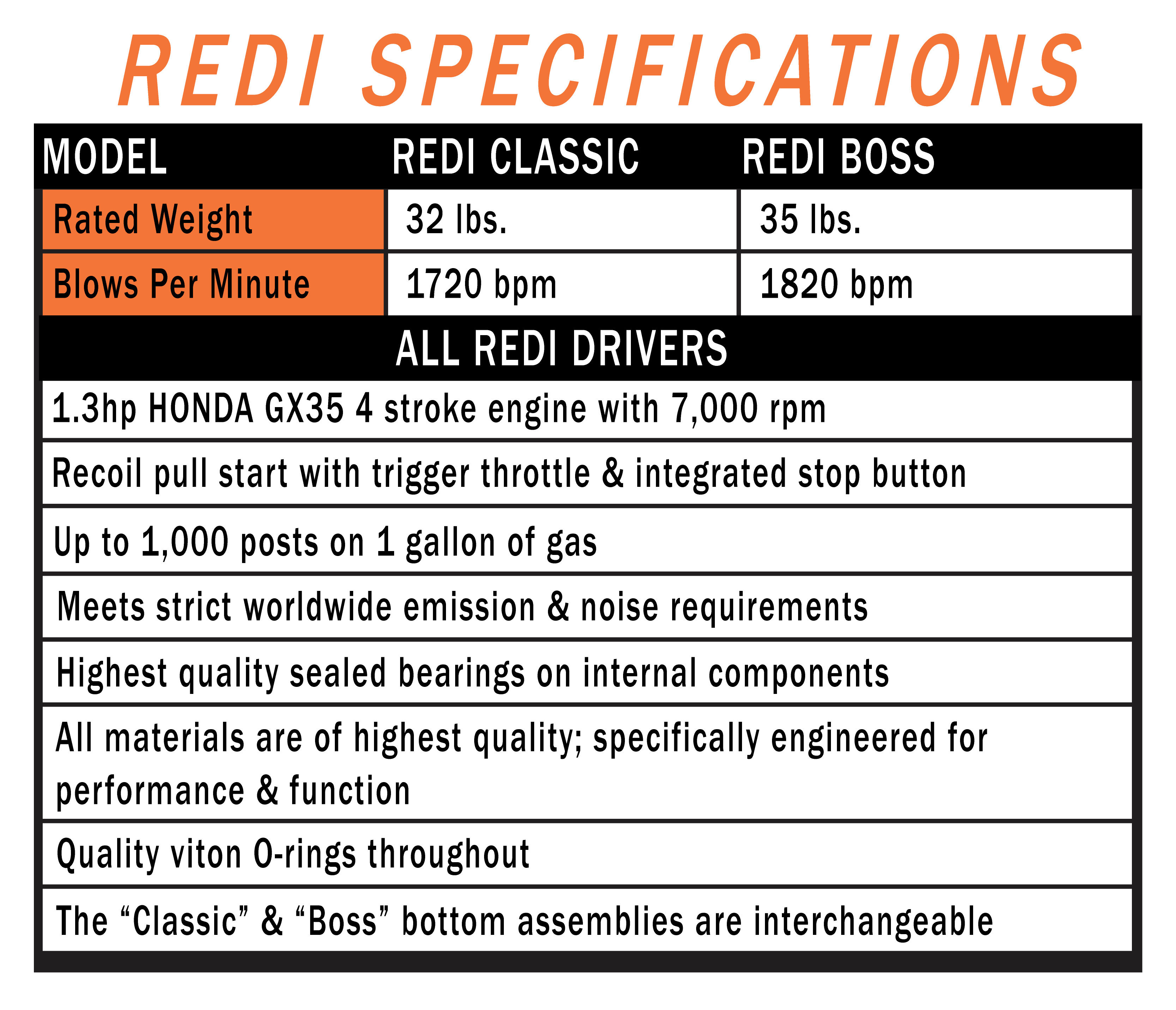 We have sold other brands of gas powered post drivers, and wished we hadn't. We strive to sell products that will make your job easier and won't breakdown. The other two brands of gas powered post drivers we sold were a nightmare. The REDI Driver® has a three year warranty, is user-friendly and makes your job so much easier. It will complement your "Silt Fence Plow", making your crew even more efficient. - Chris McCormick